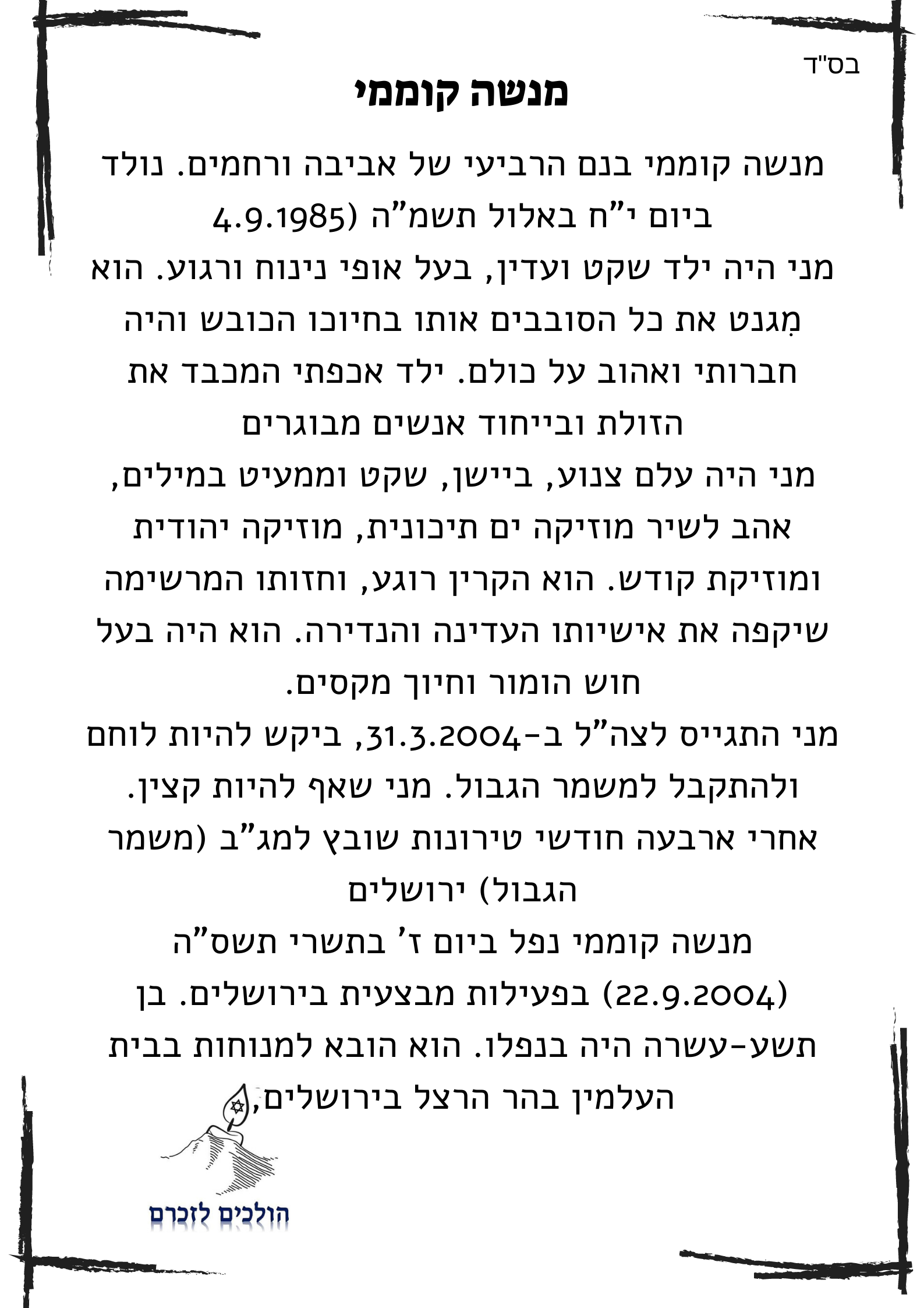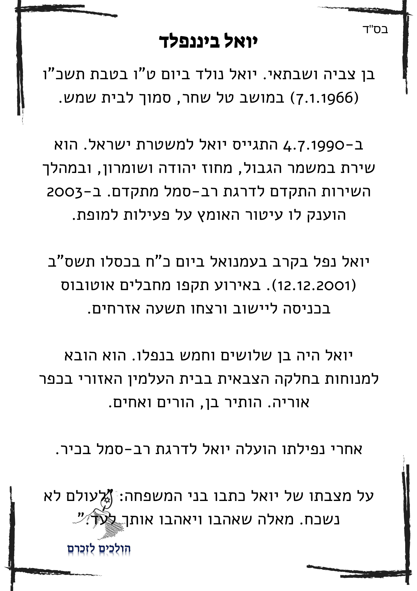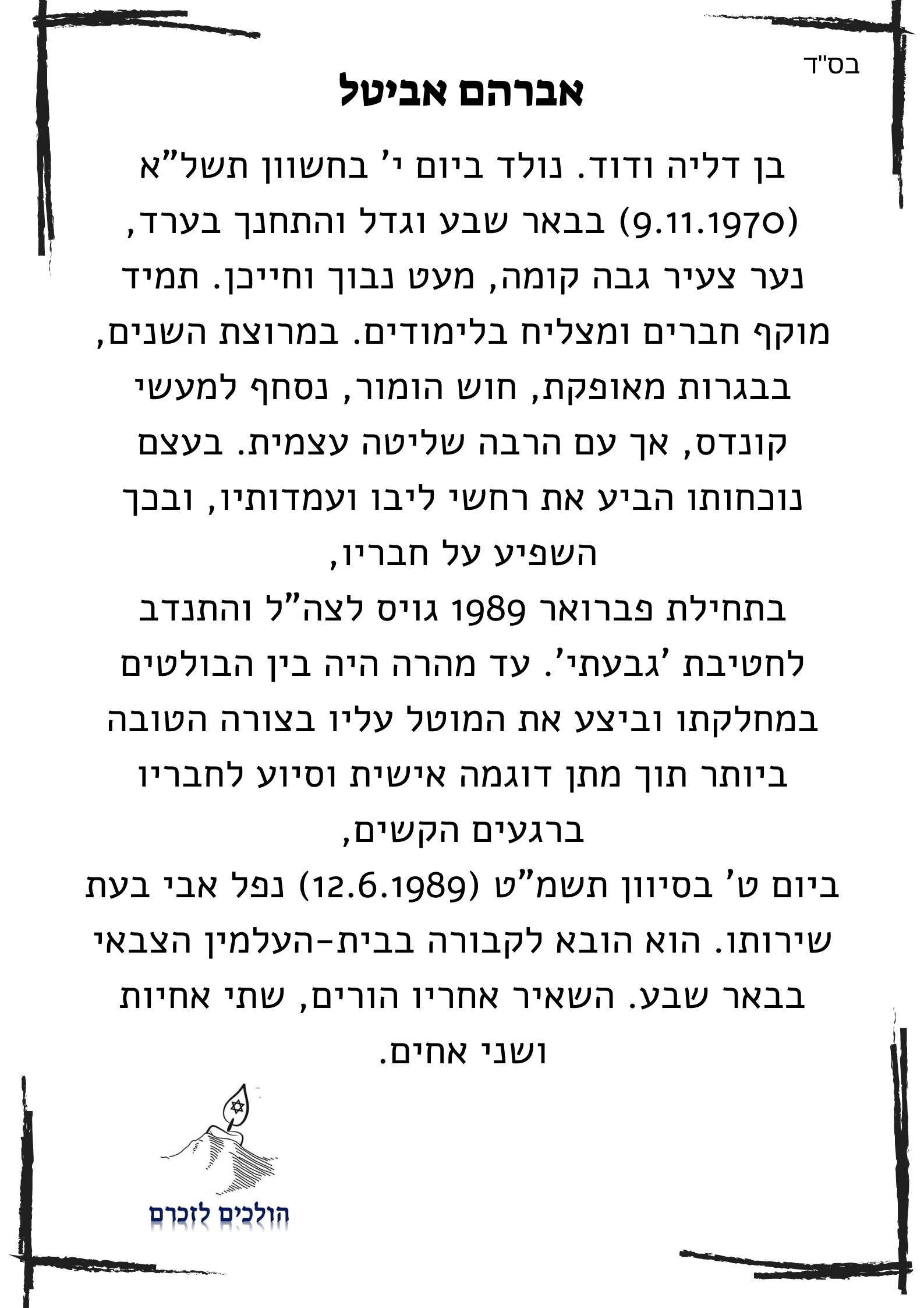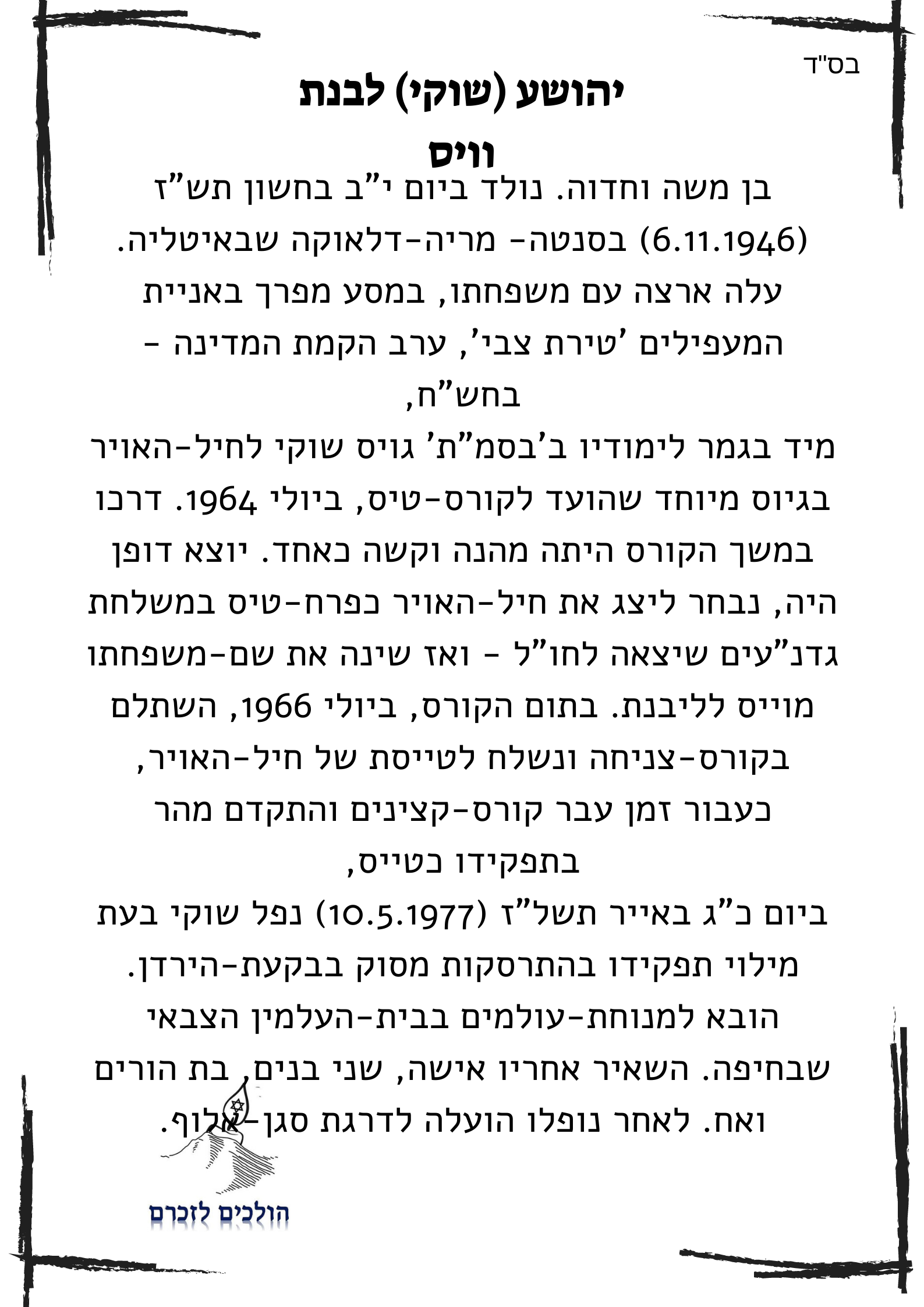 הולכים לזכרם, מיזם שמנציח את חללי צה״ל שמסרו נפשם על הארץ הזאת ופחות זכו להכרה.